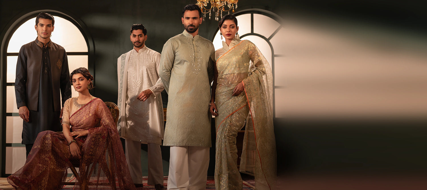 with elegant Jamdani sarees,