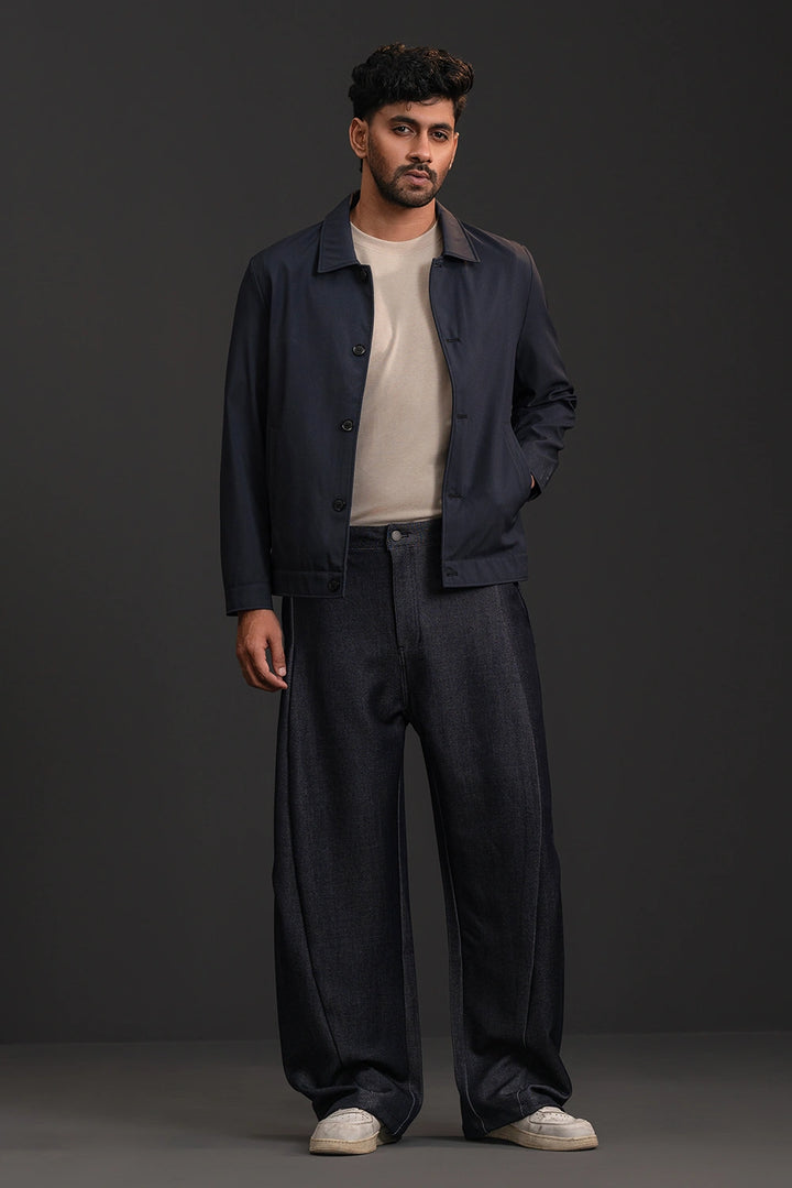 Redefine casual sophistication with the Modern Drape Baggy Fit Jeans. Designed for comfort and effortless style, these jeans feature a relaxed silhouette with a structured drape that moves naturally with you. Crafted from a refined blended denim fabric, they balance durability with a soft, fluid texture. The pleated front adds depth and dimension, while the wide-leg fit offers a modern edge perfect for both casual and elevated looks. Pair them with a crisp shirt or oversized tee for a versatile statement.