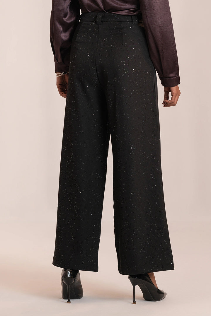 Elevate your style with the Stardust Wide-Leg Pant, a perfect blend of sophistication and modern ease. Crafted from premium blended fabric, these pants feature a graceful drape and a subtle shimmer that catches the light with every move. The wide-leg silhouette adds a touch of effortless elegance, offering both comfort and refined appeal. Designed with classic tailoring and functional pockets, it’s a versatile piece that transitions seamlessly from day to evening.