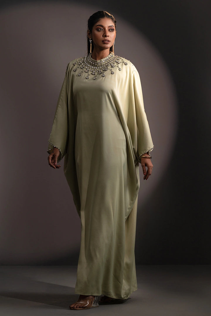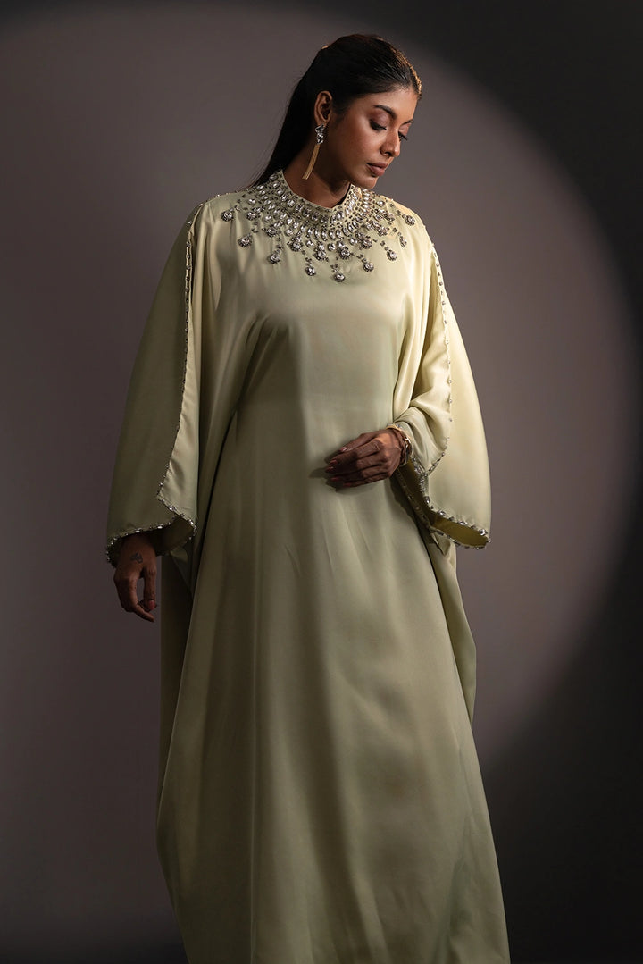 Every element of the Crystal Drape Kaftan speaks of elegance and refinement — a true statement of modern luxury blended with classic allure.