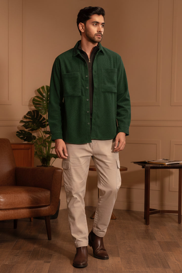 Elevate your everyday style with our Regular-Fit Textured Overshirt, a refined essential designed for modern sophistication. Crafted from a premium blended fabric, it offers a soft yet structured feel—perfect for layering in any season.