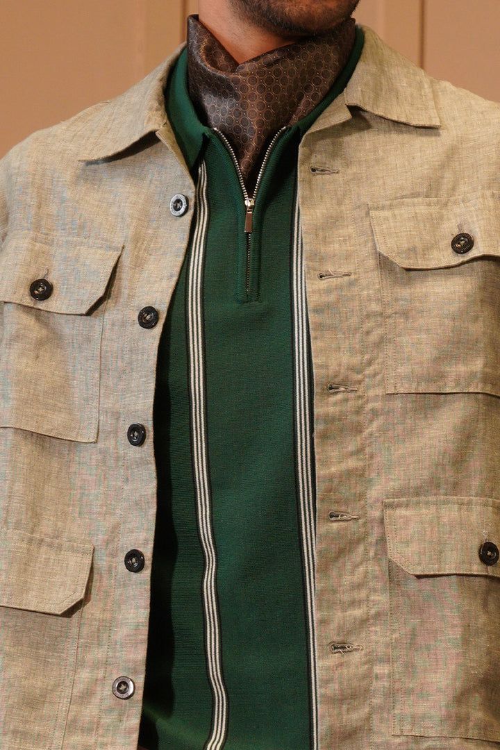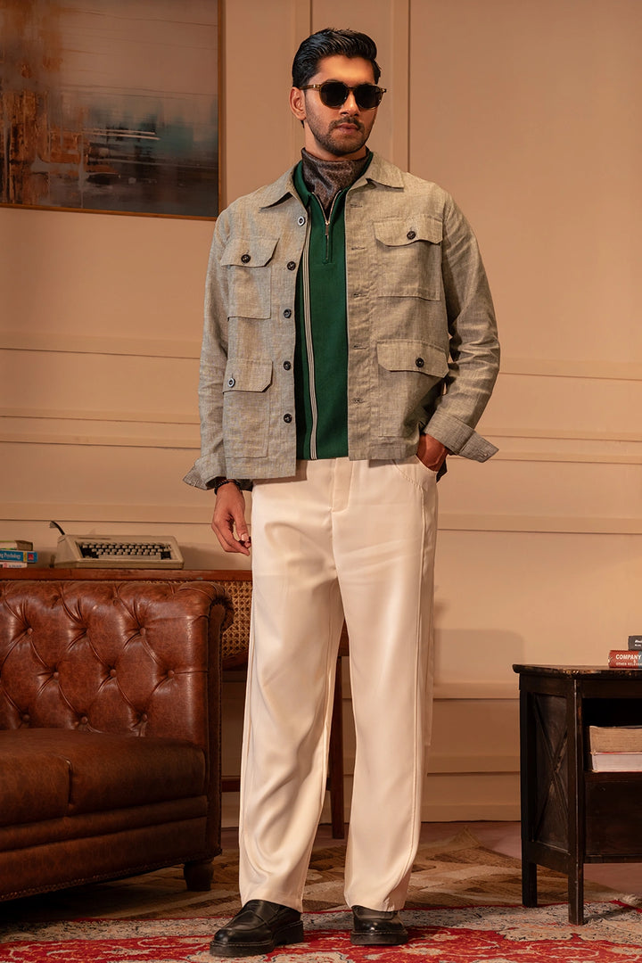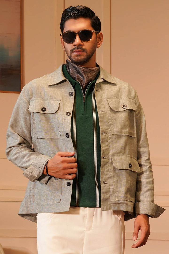 Step into effortless sophistication with our Premium Linen Four-Pocket Overshirt in an elegant olive hue. Crafted from 100% pure linen fabric, this overshirt offers a refined balance of structure and breathability...