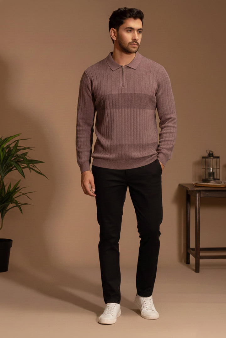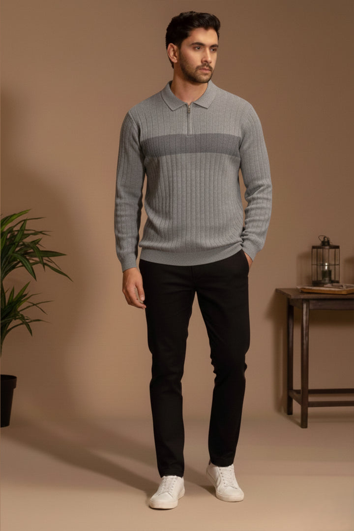 Discover elevated simplicity with the Structured Zip-Collar Sweater, crafted to deliver both comfort and refined style. The rib-knit texture adds depth and dimension, while the zip-collar design provides versatile styling options—from relaxed to polished. Made from a premium blended fabric, it offers a smooth, soft feel with excellent durability and shape retention. Finished with neatly ribbed cuffs and hem, this sweater delivers a streamlined silhouette that pairs effortlessly with trousers, denim, or outerwear. A timeless essential designed for everyday sophistication.