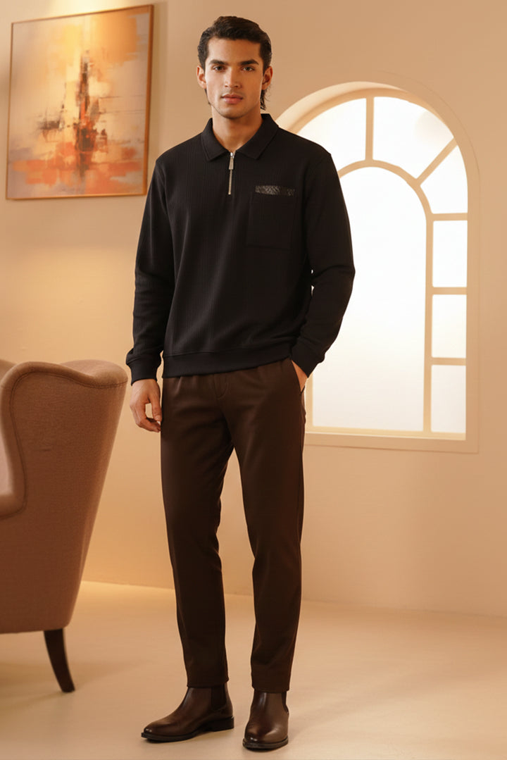 Elevate your everyday wardrobe with the Textured Zip-Collar Sweatshirt, crafted from premium blended fabric for exceptional comfort, durability, and a refined feel. Designed with a subtle textured pattern, this sweatshirt offers a modern, elevated look while keeping the silhouette clean and versatile.