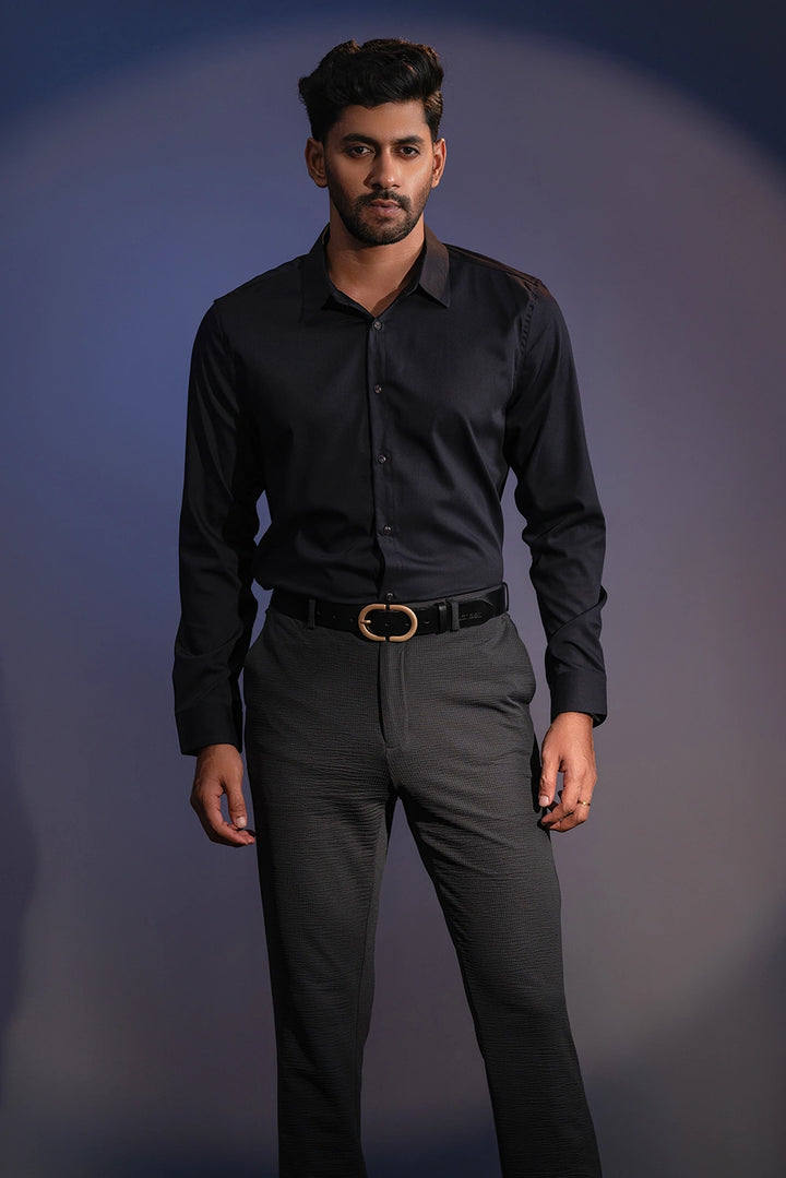 Engineered to maintain its crisp finish throughout the day, this shirt drapes effortlessly while ensuring ease of movement. Whether paired with tailored trousers or layered under a blazer, the Signature Formal Shirt stands as a staple piece that defines confidence, class, and contemporary elegance.